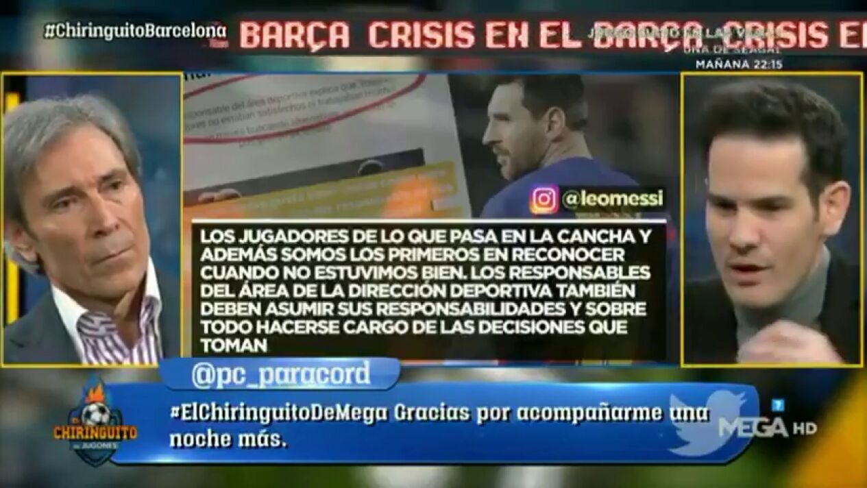 "Sinceramente no me gusta hacer estas cosas, pero creo que cada uno tiene que ser responsable de sus tareas y hacerse cargo de sus decisiones. Los jugadores, de lo que pasa en la cancha, y además somos los primeros en reconocer cuando no estuvimos bien. Los responsables del área de dirección deportiva también deben asumir sus responsabilidades y sobre todo hacerse cargo de las decisiones que toman", opinaba Messi.