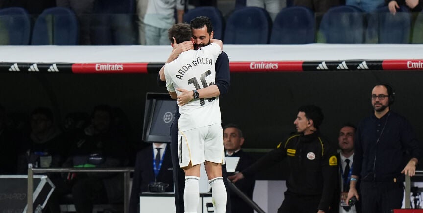 El turco anotó un gol absolutamente espectacular desde una distancia superior a los sesenta metros. Puso en pie al Bernabéu, a sus compañeros y a su entrenador, que se llevó las manos a la cabeza ante una obra de arte.