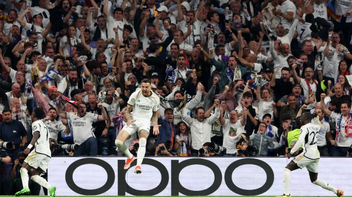 Apenas tres minutos después, con el Bernabéu en ebullición y los de Ancelotti en busca de evitar la prórroga, el canterano madridista ejecutó la remontada con un remate en el segundo palo tras centro de Rüdiger.