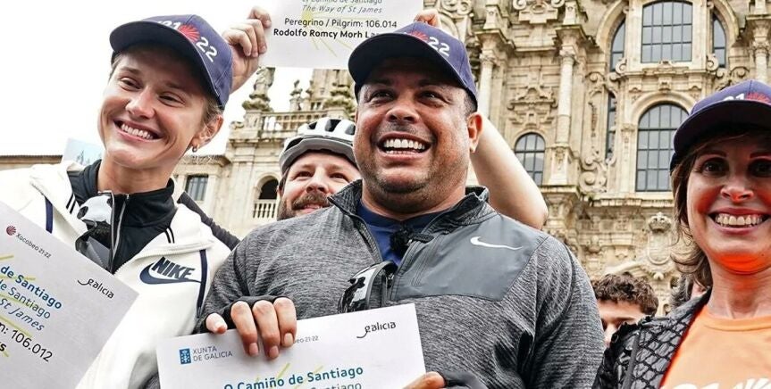 Ronaldo se subió a la bici el pasado domingo en el estadio José Zorrilla junto a varios integrantes del cuerpo técnico pucelano, y tres días más tarde ya ha llegado a la ciudad de Santiago de Compostela. "He estado jugando y tengo el famoso gol de Compostela, pero el Camino es algo especial que tenía en mente", señaló.