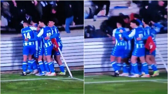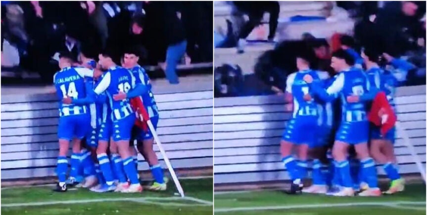 El autor del tanto que dio el triunfo sobre la bocina a los de Borja Jiménez fue Alberto Quiles, que junto a sus compañeros se dirigieron al córner donde se encontraban todos sus aficionados y vieron de cerca el incidente ocurrido.