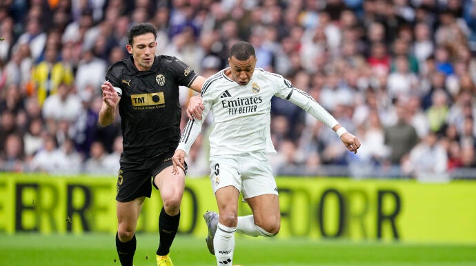 Luka Modric sacó a relucir su magia y dejó a Kylian Mbappé completamente solo con gran pase con el exterior. El francés encaró a Mamardashvili pero Tárrega le alcanzó. Delantero y defensa forcejearon hasta que Kylian se fue al suelo. El veredicto de Cuadra Fernández, penalti.
