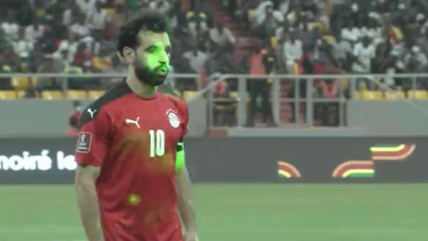 La estrella de Egipto, Mohamed Salah, fue el primer encargado de lanzar desde los once metros y en la misma retransmisión se pudo observar una gran cantidad de punteros láser verdes apuntando directamente a los ojos del jugador del Liverpool, que terminó mandando el penalti a las nubes. La historia se repitió en todos y cada uno de los lanzamientos de los jugadores egipcios.