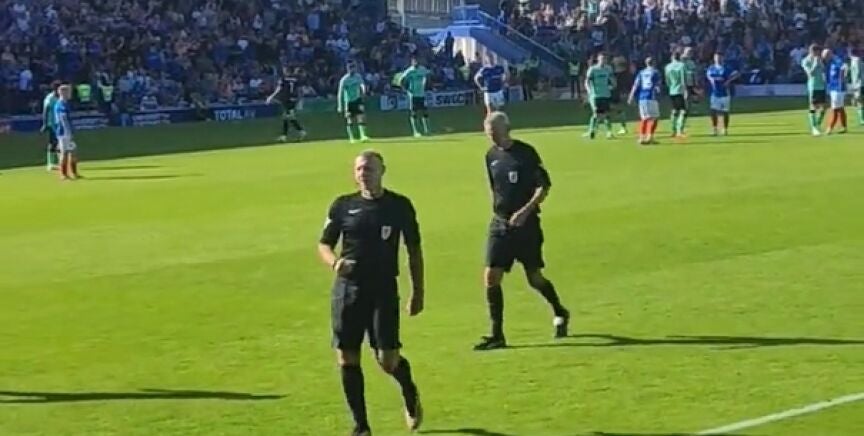 Momento surrealista el que se vivió este sábado en la tercera división inglesa. El Portsmouth se enfrentaba al Cheltelham Town en la cuarta jornada del campeonato en el que estaba llamado a ser uno de los partidos de la jornada, ya que los locales llegaban peleando por el liderato. El partido pasará a la historia, pero no por la calidad del juego.