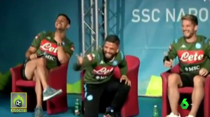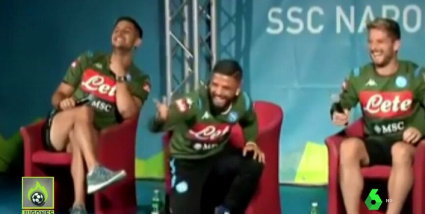 En el Nápoles hay buen ambiente y buen 'feeling' entre jugadores y técnico. Al menos eso se desprende de un acto del cuadro 'azzurro', en el que Ancelotti coge el micrófono para hacer una pregunta a un Insigne que no da crédito. Lo vemos en Jugones.