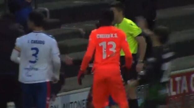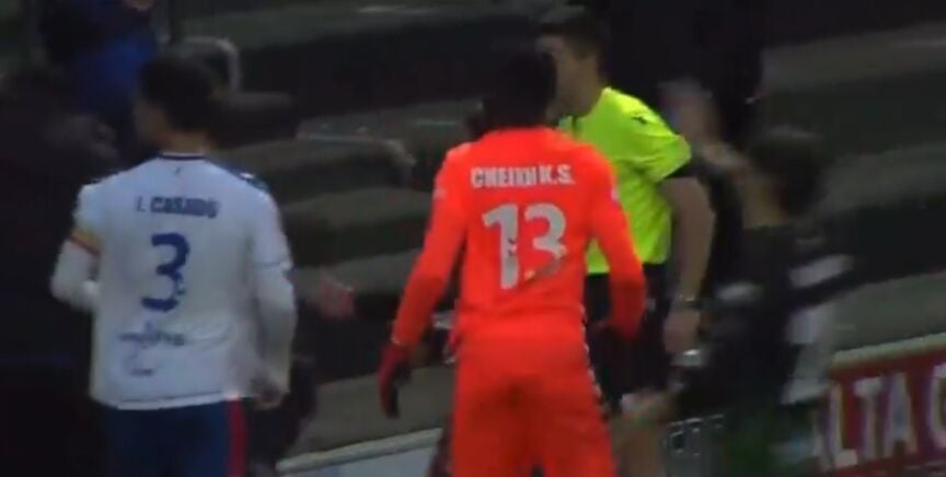 Agarró de la bufanda a uno de los aficionados y le expulsaron