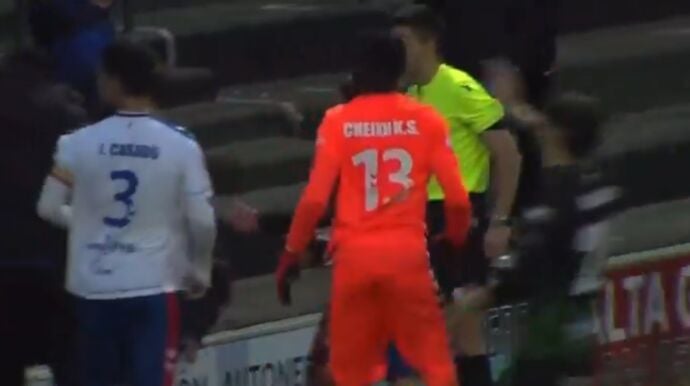En ese momento, desde la grada comenzaron a proferir una serie de insultos racistas a Cheick Sarr, portero del Rayo Majadahonda. El arquero se giró, fue donde se hallaban los aficionados y agarró de la bufanda a uno de los hinchas.