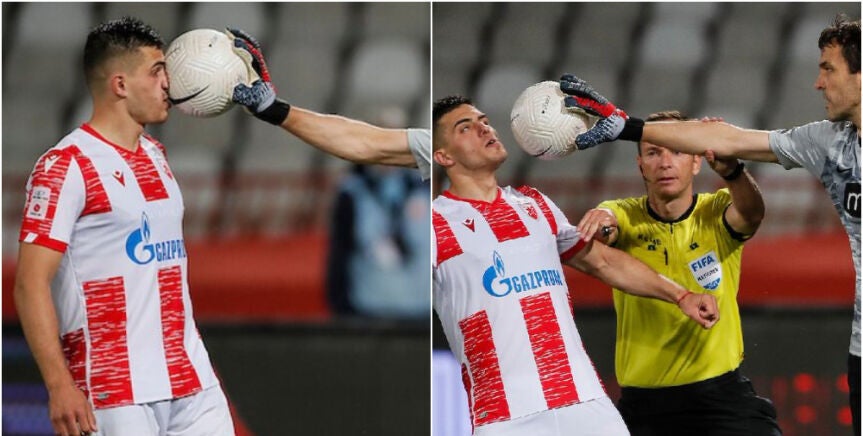 Nikola Ksrtovic celebró su lanzamiento en la cara del meta del Partizan, Vladimir Stojkovic, y simuló una agresión tirándose al suelo tras poner el portero el balón en su cara. El Estrella roja se alzó con el título.