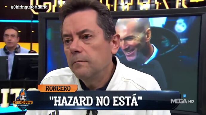 Roncero está comenzando a perder la paciencia con Eden: "El Real Madrid jugó con diez y ya me empieza a tocar las narices. Entiendo que Zidane quiera salvar al soldado Hazard, pero Hazard no quiere salvarse".