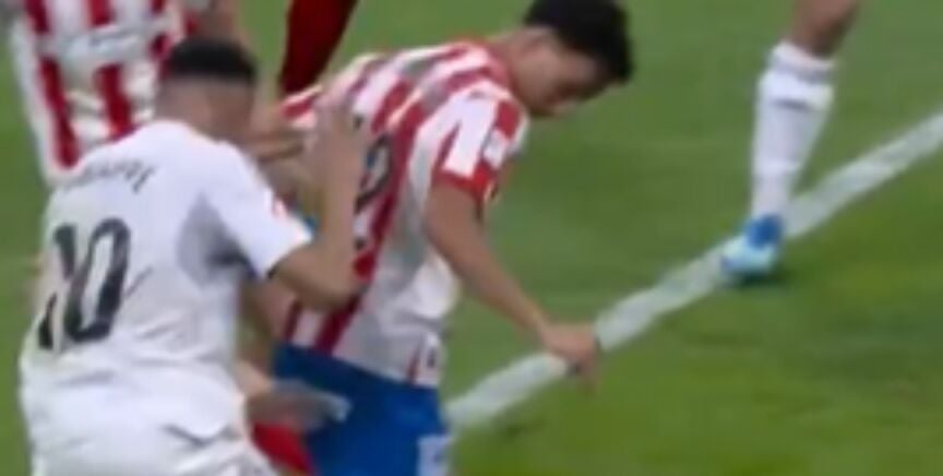 En el minuto 88, el francés se fue al suelo dentro del área quejándose de un 'codazo' del defensor gironí. Ni el colegiado del encuentro ni el VAR lo consideraron como penalti.