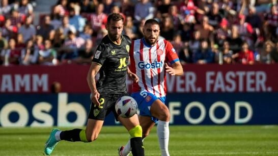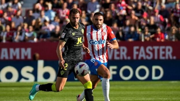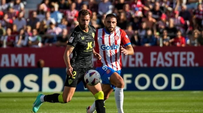 El central, que vio amarilla durante la primera parte, se lamentó de dos acciones de dos goles que perjudicaron al Girona. El primero, fue el segundo gol del Almería. Embarba lanzó y el rebote lo introdujo dentro Leo Baptistao. La posición del brasileño era milimétrica, pero estaba en posición correcta. Eso sí, los jugadores del Girona no estaban nada de acuerdo.