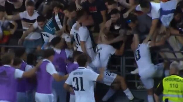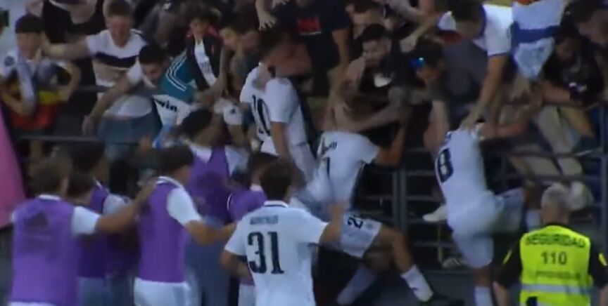 Tal fue la euforia de los jugadores que se lanzaron a celebrarlo con un sector de aficionados... sin saber lo que vendría a continuación.