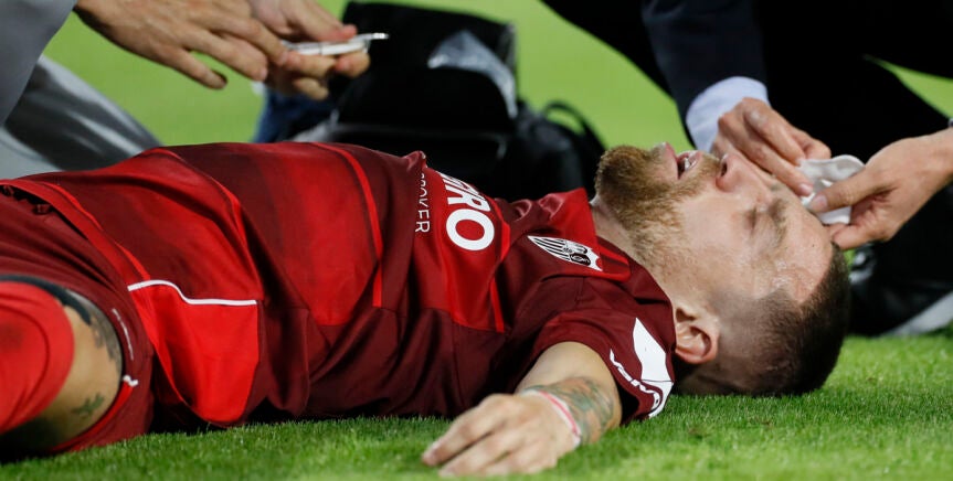 El argentino se fue rápidamente al suelo, y Acuña hizo el gesto al línier de que el francés había sacado el codo. De nuevo, todo quedó en amarilla.