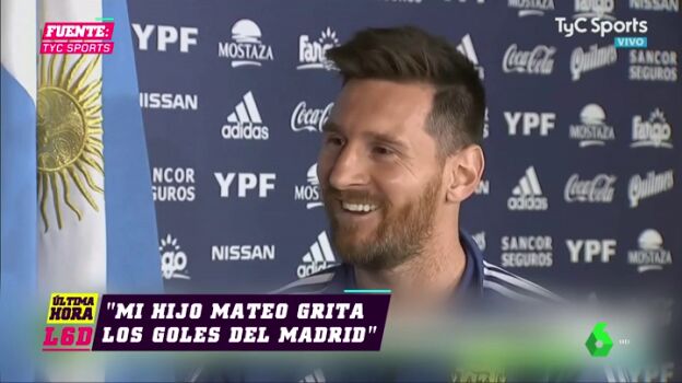 El '10' del Barça y de la selección argentina asegura que Mateo "grita los goles del Real Madrid para hacer calentar a Thiago", su otro hijo. Su 'vacile' no se queda ahí, también apoya a los equipos contra los que se enfrenta su padre para hacerle rabiar.