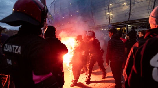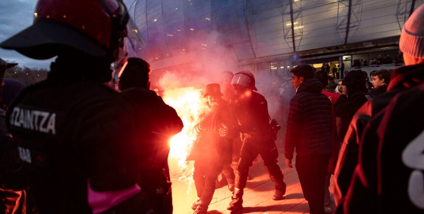 A pesar de que el Benfica había pedido a sus 1.800 aficionados desplazados a San Sebastián un "comportamiento irreprochable" después de que en los cuartos de final de la pasada edición de la Champions League en Milán terminarán "con heridos y sanciones de la UEFA", los ultras han hecho caso omiso.