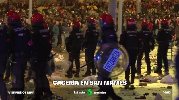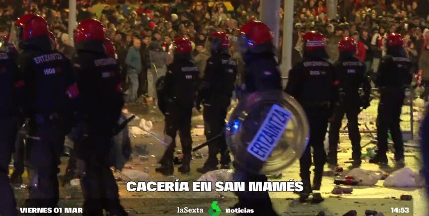 Los ultras desataron el pánico en San Mamés: cuatro ertzainas, heridos en la previa del Athletic Club- Atlético de Madrid