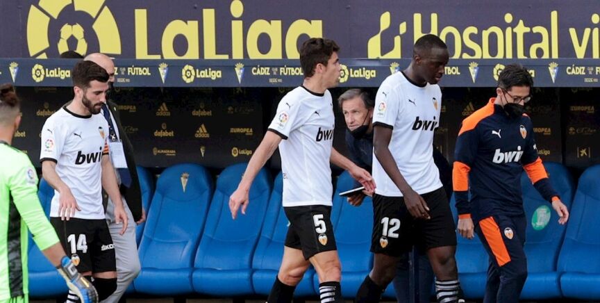 El Valencia ha abandonado el terreno de juego en el partido que les enfrentaba al Cádiz. El motivo, supuestos insultos racistas de Cala, jugador cadista, a Diakhaby, central de los che.