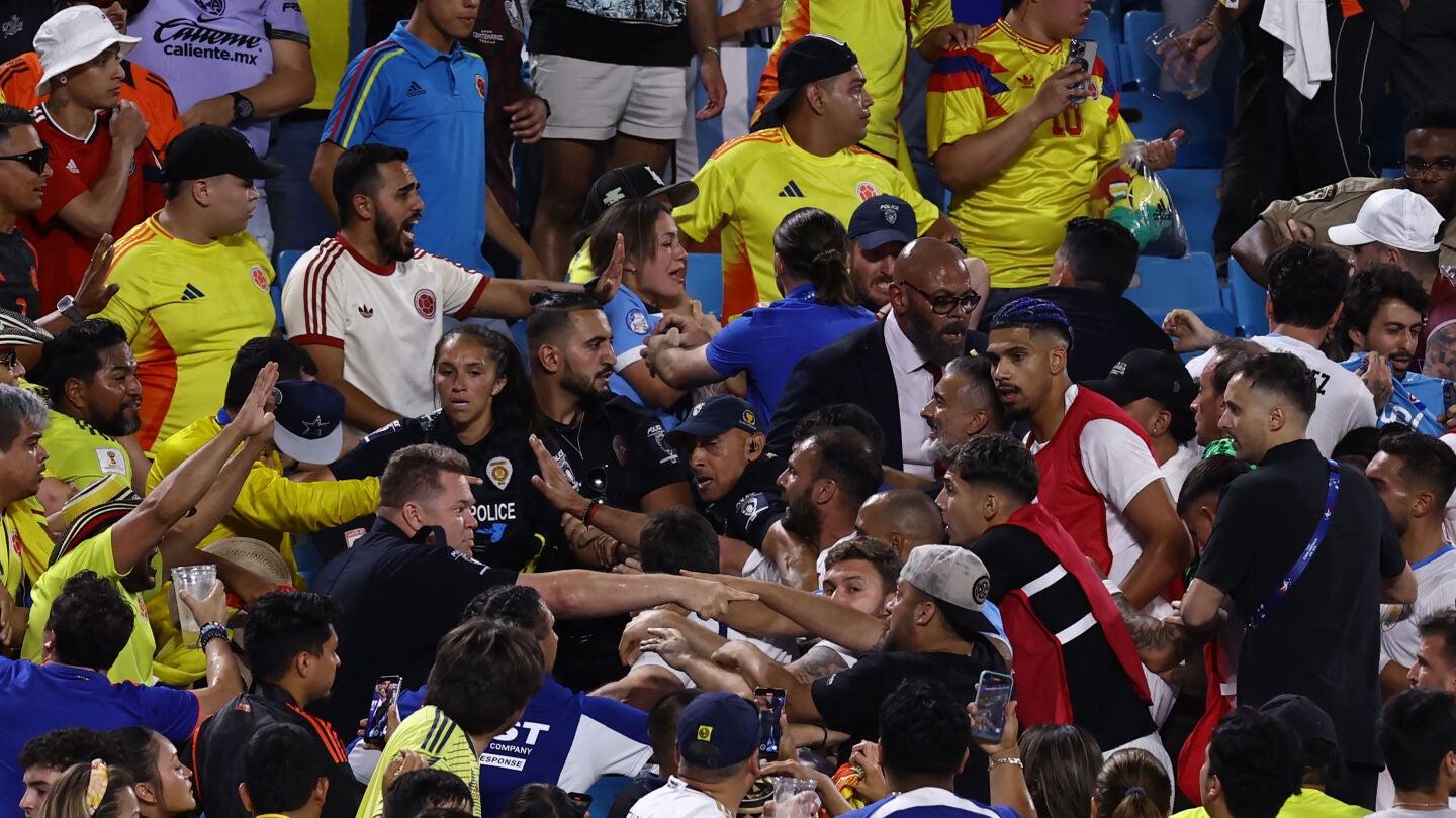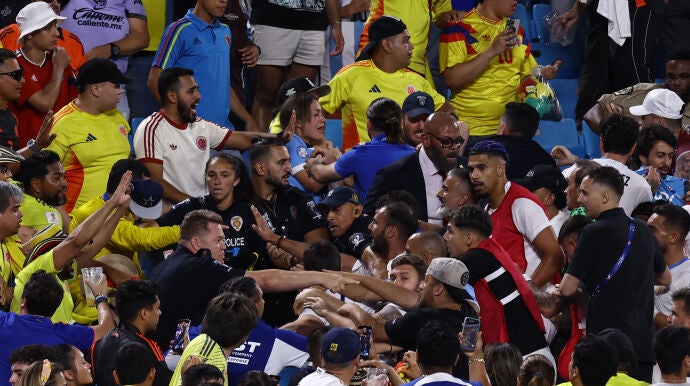 La clasificación de Colombia para la final de la Copa América quedó empañada por una vergonzosa pelea entre futbolistas uruguayos y aficionados de la selección de Colombia. Darwin Núñez y Ronald Araujo saltaron a la grada y se liaron a puñetazos con algunos aficionados.