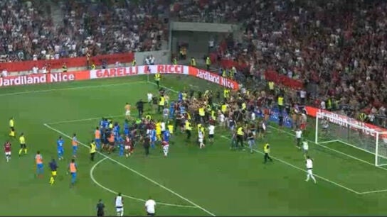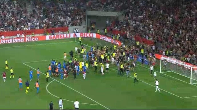 De vergüenza: los ultras del Niza invaden el campo para pegar a los jugadores del Olympique de Marsella