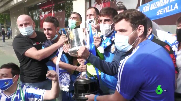 Así pues, la alegría llenó las calles de Donosti y también incluso de Sevilla, con una peña blanquiazul que despidió a los de Alguacil con aplausos.