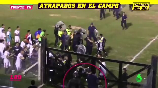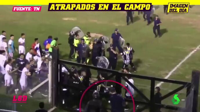 Ocurrió en un partido en Argentina. En plena tangana sobre el campo, con la Policía prácticamente parada, sucede lo peor: al equipo visitante le cierran la puerta de entrada al vestuario. Los jugadores fueron linchados y tuvieron que escalar las vallas del campo para poder huir.