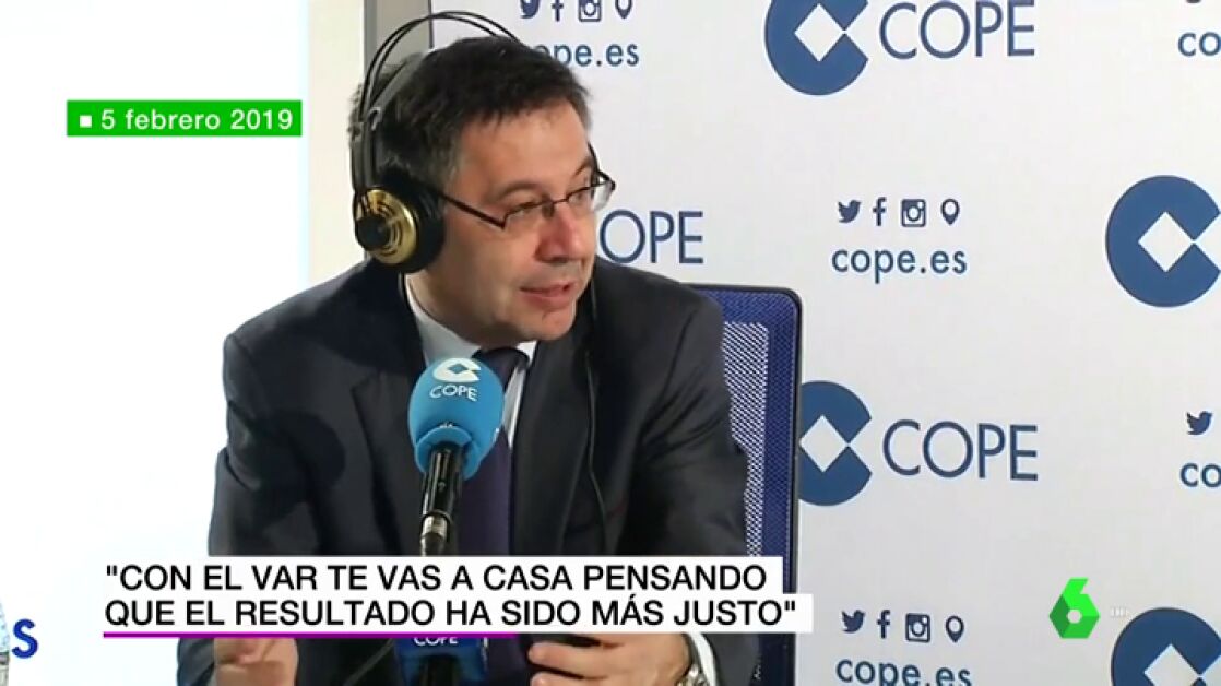 "Nunca llamaré a Rubiales para quejarme del VAR. Llevamos años pidiendo el videoarbitraje. Es un sistema que hace que los árbitros piten más tranquilos, y te vas a casa pensando que el resultado es más justo", afirmaba Josep María Bartomeu no hace mucho tiempo.