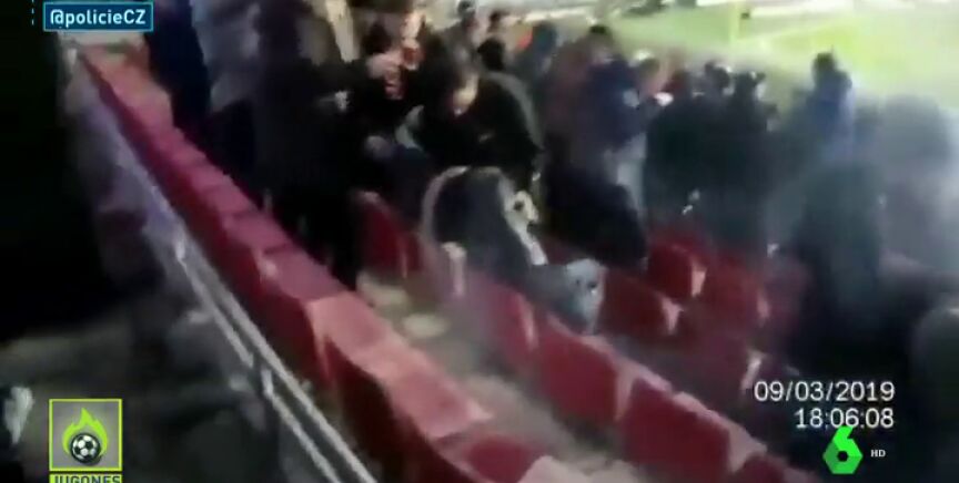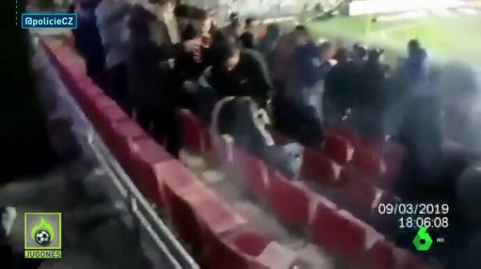 El Sparta de Praga-Viktoria Plzen tuvo un momento muy tenso en las gradas. Una mujer tuvo que ser evacuada tras recibir el impacto de una bengala lanzada por parte de uno de los ultras del Plzen.