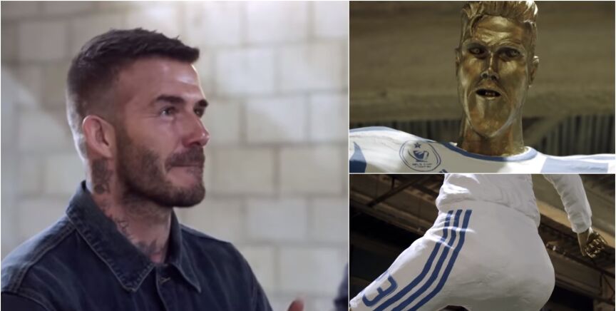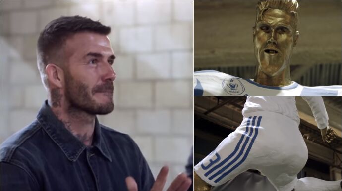 Pero la estatua que enseñaron al exjugador del Real Madrid y Manchester United no era lo que esperaba el propio futbolista. Beckham pasó un mal rato mientras el supuesto autor de la obra le explicaba los detalles de la misma.