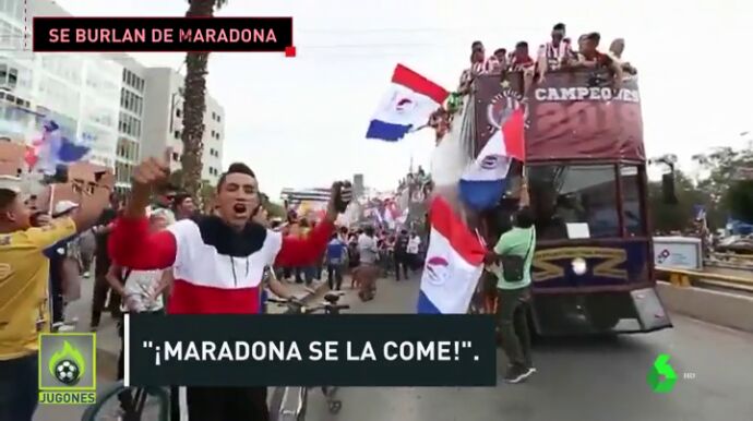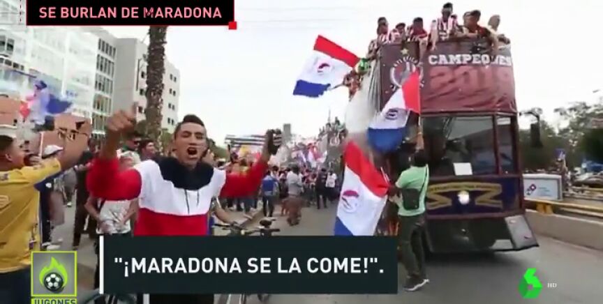 Jugadores y afición del San Luis, equipo que dejó a Maradonasin Ascenso en México, se burlaron del 'Pelusa' con cánticos ofensivos: "Maradona se la come...". El exjugador argentino dejó claro que no le afecta: "Estuve al borde de la muerte, a mí esto no me hace nada". Lo vemos en Jugones.