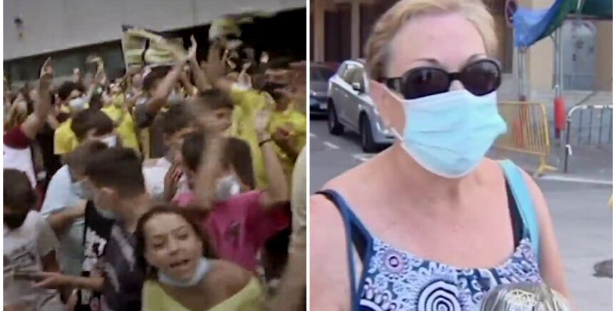 Y es que miles de aficionados se juntaron para recibir a un equipo que perdió ante el Fuenlabrada. Además, muchos de ellos no portaban mascarillas a pesar de no poder cumplir con la distancia de seguridad.