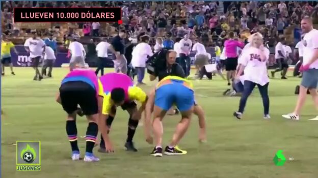 Dinero lloviendo del cielo y aficionados esmerándose por atrapar todos los billetes que puedan. Es lo que ocurrió en un campo de fútbol de Estados Unidos, aunque realmente, caían de un helicóptero.