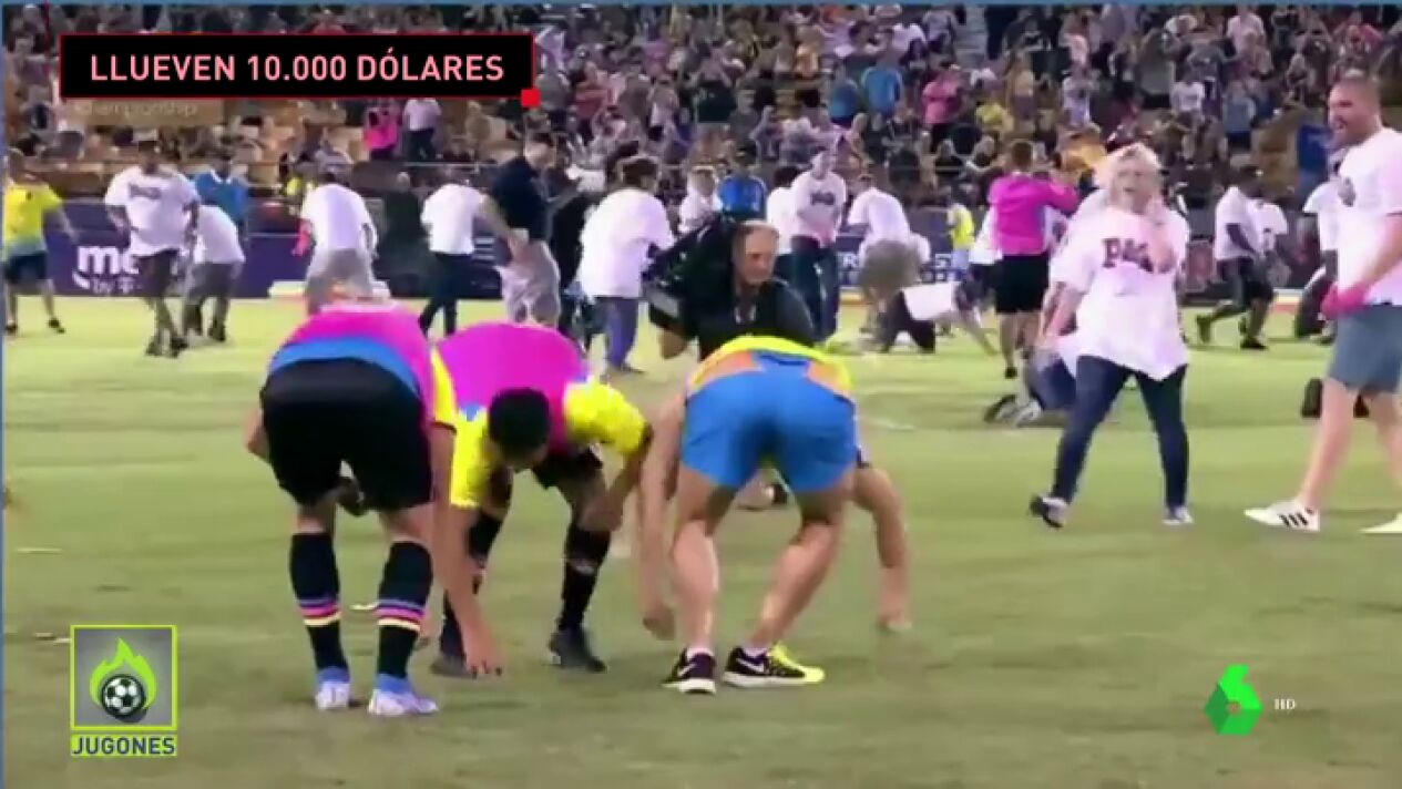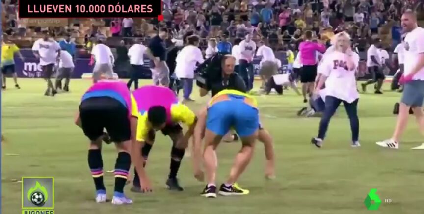 Inaudito: caen 10.000 dólares del cielo en un campo de fútbol y los hinchas reaccionan así