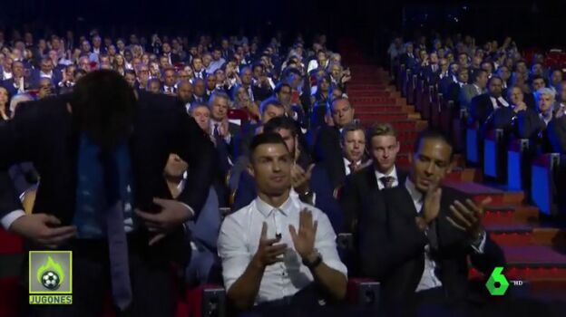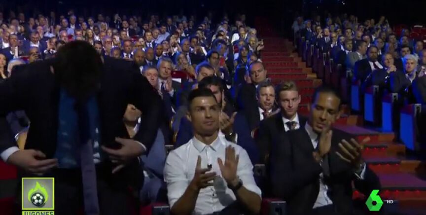 Al estar ambos nominados también al premio al Mejor Jugador del Año, Messi y Cristiano Ronaldo estaban sentados al lado junto a Virgil van Dijk. Al anunciar al argentino como ganador del galardón a mejor atacante, Cristiano no pudo reprimir lo que sus adentros exclamaban y espetó un llamativo rostro que se podría interpretar tanto como un enfado o como pura resignación.