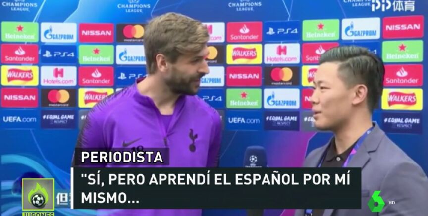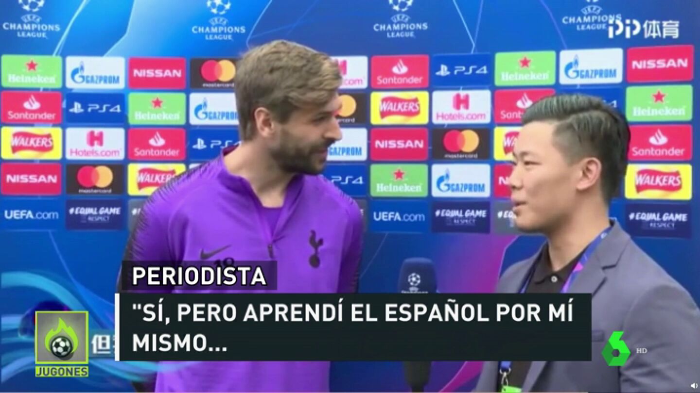 Al delantero del Tottenham le sorprendió que un reportero chino le fuese a hacer una entrevista en español. El nivel del periodista impresionó a Fernando Llorente. Informa Jugones.