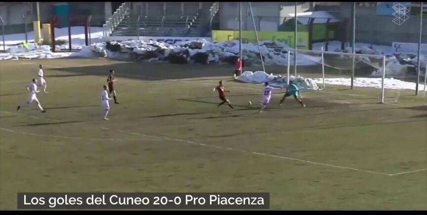 El Cuneo metió 20 goles, por ninguno del Pro Piacenza. Y es que el equipo italiano, con problemas económicos, se vio obligado a jugar con siete jugadores juveniles de la cantera para evitar un descenso administrativo.