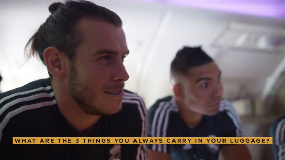 Modric le pregunta qué tres cosas lleva siempre en su equipaje, pregunta que Bale reconoce no haber entendido: "No tengo ni idea de lo que has dicho".