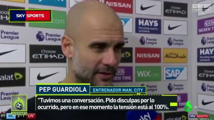 Guardiola perdió los papeles en la recta final del City-Liverpool y se encaró con el cuarto árbitro. Al finalizar el partido, el técnico catalán explicó lo ocurrido y pidió disculpas: "Tuvimos una conversación, pido disculpas por lo ocurrido, pero en ese momento la tensión está al 100%...". Lo cuenta Jugones.