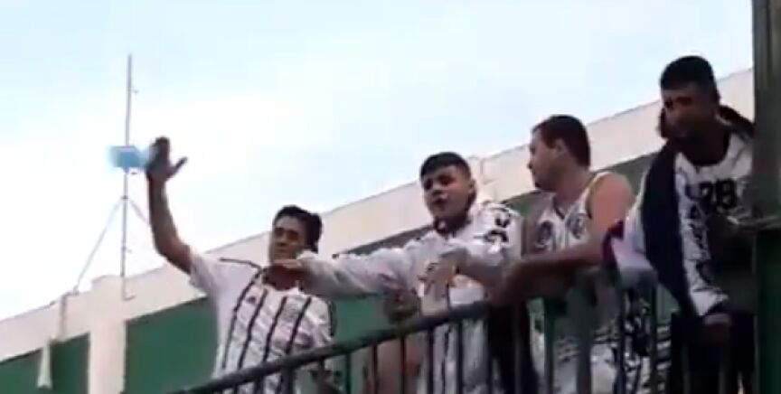 Varios de ellos señalaron a cinco aficionados del Figueirense que estaban en un balcón. Uno de ellos comenzó a hacer el gesto de un avión estrellándose con su brazo derecho, otro extendió sus dos brazos.