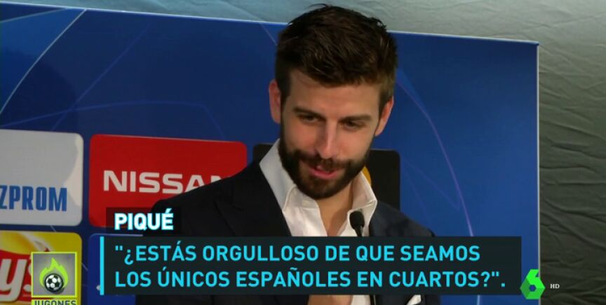 Después de que el Barcelona se clasificase para los cuartos de final de Champions, un periodista preguntó a Gerard Piqué si el Barçaes ahora el mejor equipo español. El central catalán respondió al periodista: "¿Estás orgullosos de que seamos los únicos españoles en cuartos?". Lo vemos en Jugones.