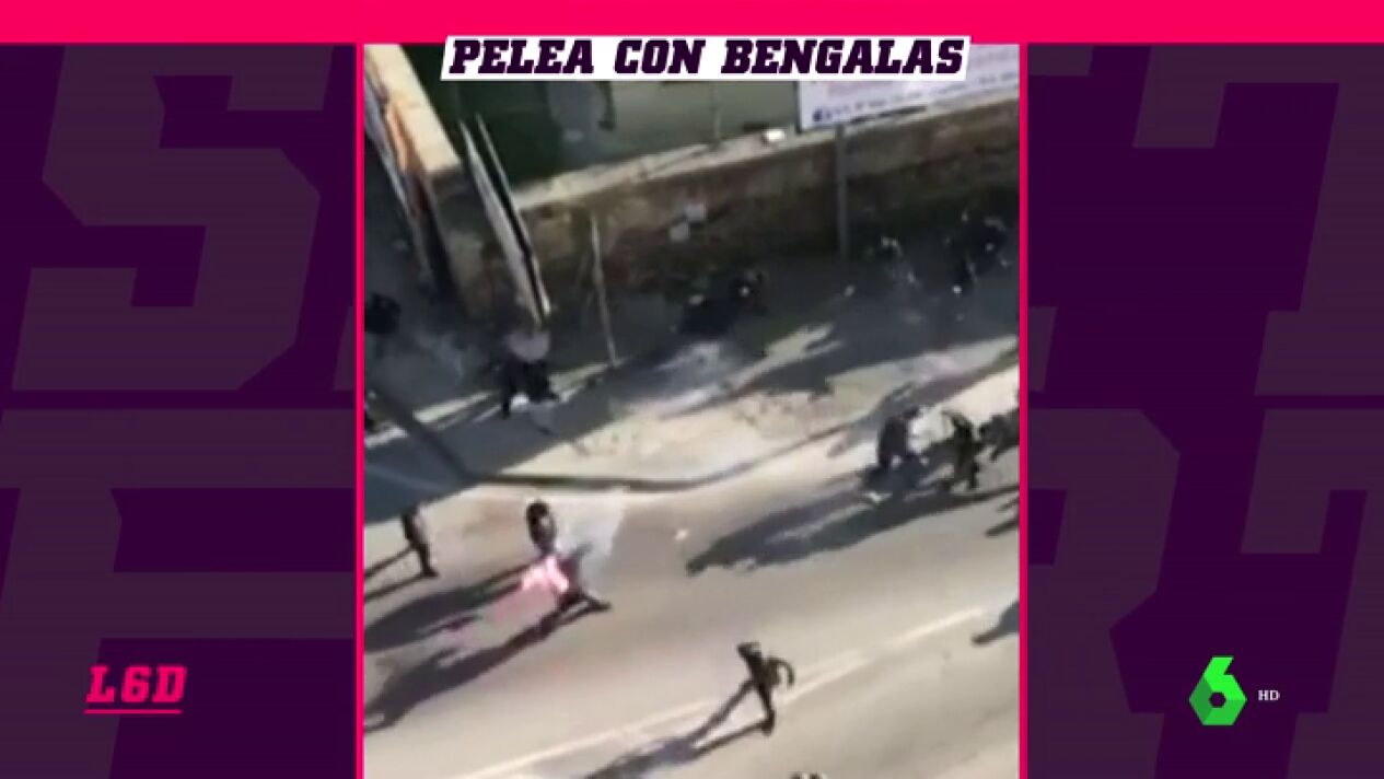 Bengalas, piedras y botellas. Dos gruypos ultras se enzarzaron en una lamentable y vergonzoza pelea tras un partido d ela liga regional napolitana. La calle se convirtió en un auténtico campo de batalla.