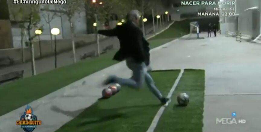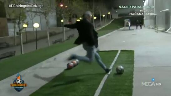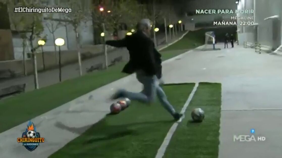 El colaborador de 'El Chiringuito' usó para sus intentos el mismo balón. Para hacerse a su tacto, a su peso. Para conocer mejor el instrumento con el que iba a trabajar.