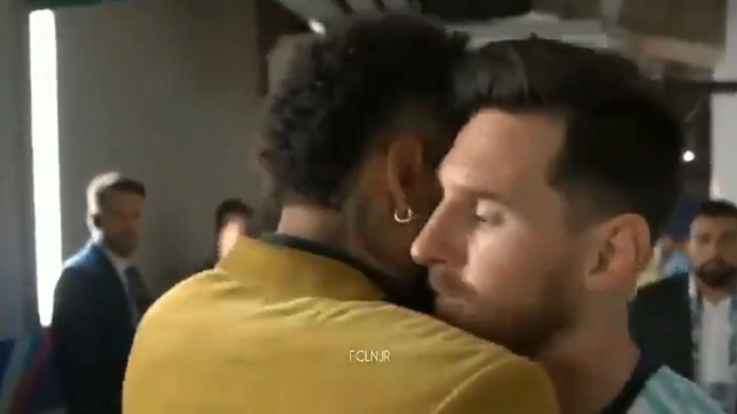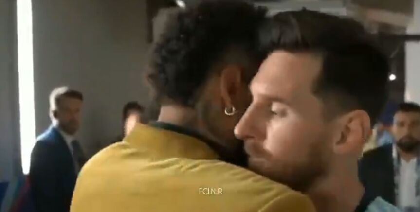 Tras la eliminación de Argentina a manos de Brasil, Neymar se encontró con Messi en los interiores del estadio Mineirao. Ambos se fundieron en un abrazo.