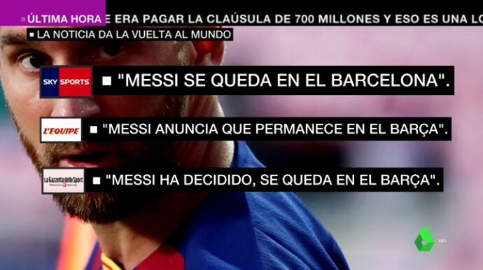 El Inter de Milán era el tercero en discordia en la carrera por Messi. En Italia también se han hecho eco de la permanencia del argentino. "Messi ha decidido, se queda en el Barça", dice 'La Gazzetta dello Sport'.