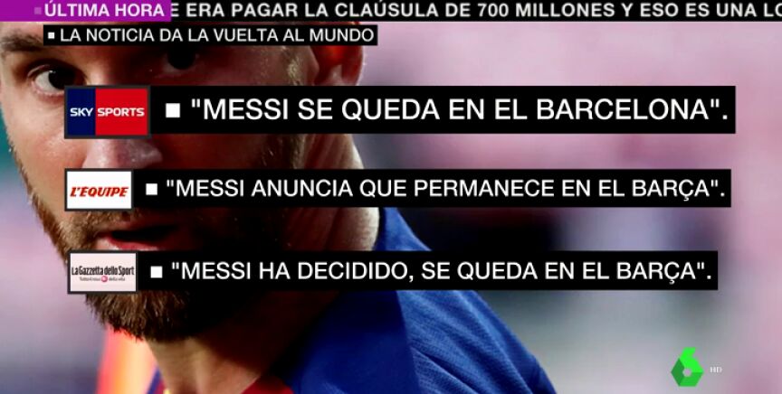 El 'me quedo' de Lionel Messi ha dado la vuelta al mundo.Tras unas semanas en las que ha mandado un burofax y ni ha ido a las pruebas PCR para incorporarse a la disciplina del Barça, el argentino ha dado marcha atrás para confirmar que se queda en la Ciudad Condal.