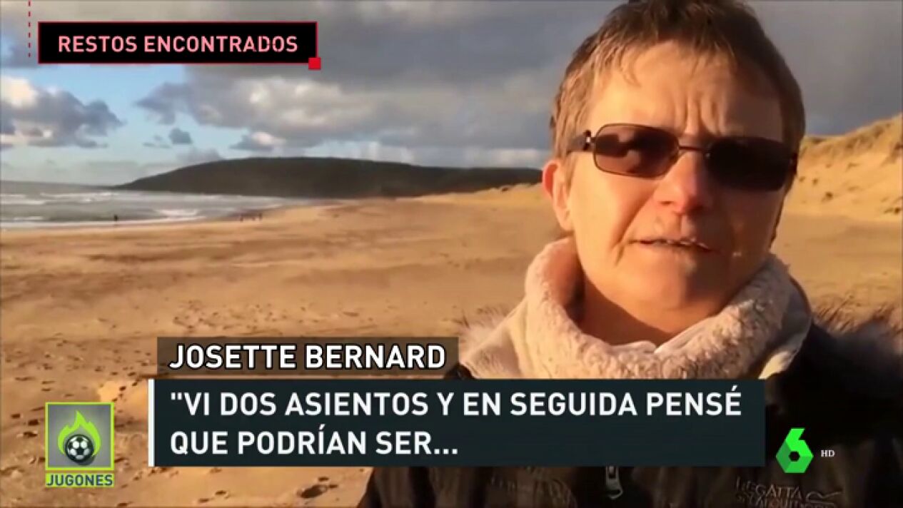 Josette Bernard, la mujer que halló los asientos del supuesto avión en el que viajaba Emiliano Sala en una playa de Normandía, explica al medio francés 'lapressedelamanche' cómo se topó con los restos. "Estaba paseando a mis perros en la playa. Al principio, pensé: 'Debe ser un pedazo de bote'. Me puse en contacto con Gendarmería para que recuperaran los objetos", explica Josette Bernard. Informa Jugones.