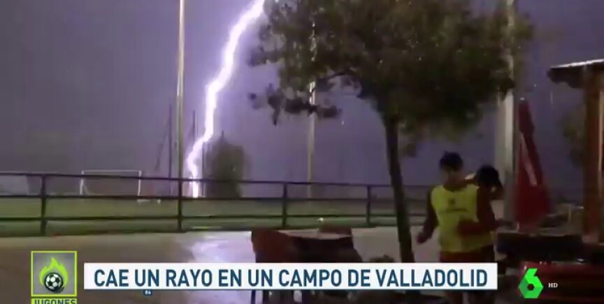 A punto estuvo de ocurrir una tragedia en los campos de entrenamiento del CD Parquesol, en Valladolid a causa de un rayo que impactó en el césped. Lo vemos en #Jugones.