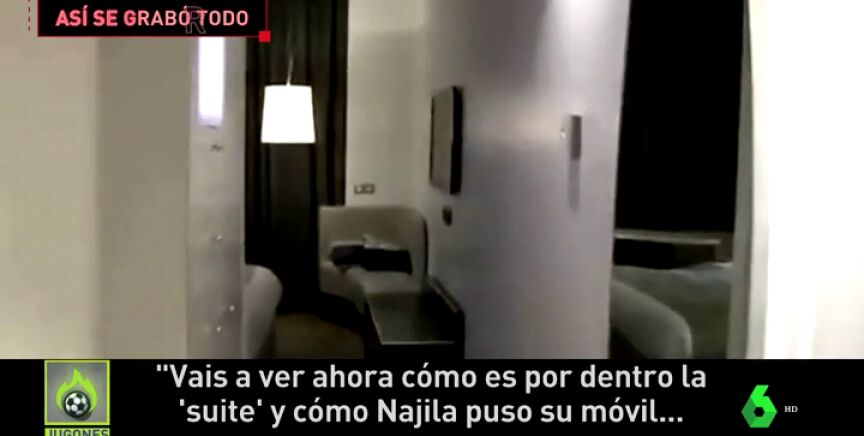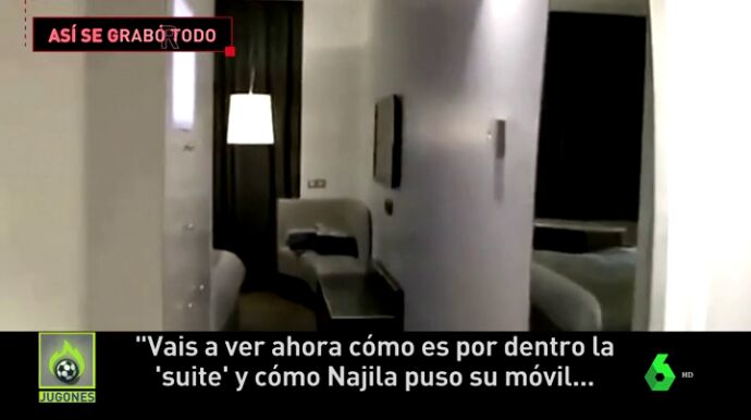 Ahí tuvieron lugar los dos encuentros entre el jugador y la modelo: "Como hizo Najila, colocamos nuestro teléfono sobre el lavabo, escondido entre las toallas".