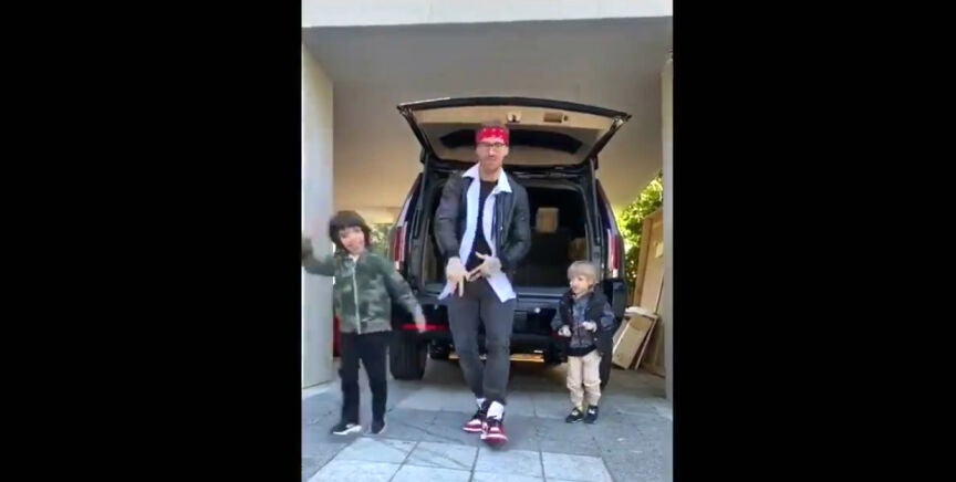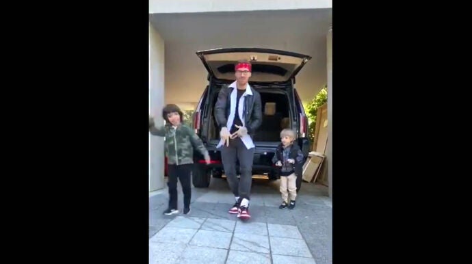 Así ha aparecido en su último vídeo compartido en Instagram, en el que le podemos ver junto a dos de sus retoños bailando y demostrando todo el 'flow' que lleva dentro. Sí, también aparece con un look de lo más peculiar.