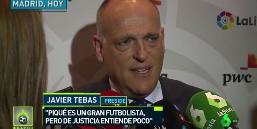 El presidente de LaLiga, Javier Tebas, dijo sobre las declaraciones del defensa del Barcelona Gerard Piqué tras la semifinal de Copa del Rey contra el Real Madrid, en las que comentó que las televisiones deberían dedicarle "el mismo tiempo al juicio injusto" del procés que al VAR, que son declaraciones "no muy buenas" de un "gran futbolista pero mal jurista".