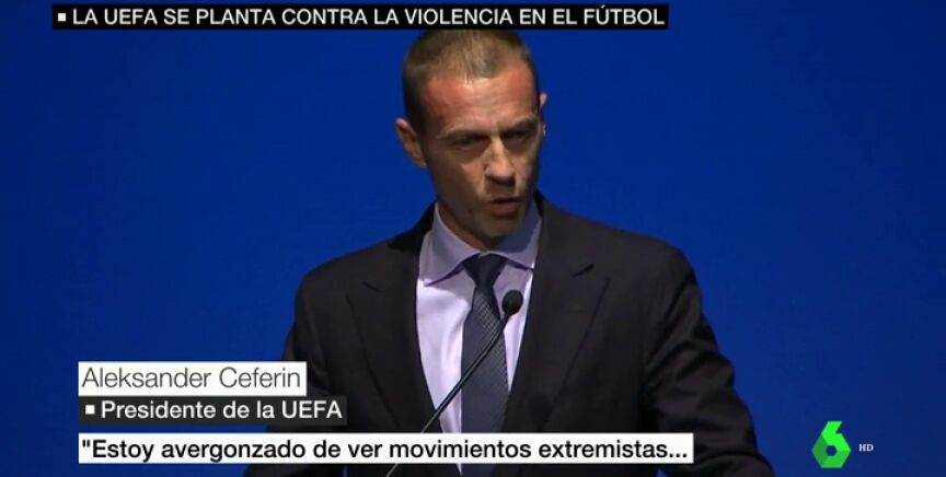 "Estoy avergonzado de ver movimientos extremistas que usan nuestro deporte como vehículo para sus mensajes de odio e intolerancia", afirma Aleksander Ceferin, el presidente de la UEFA.